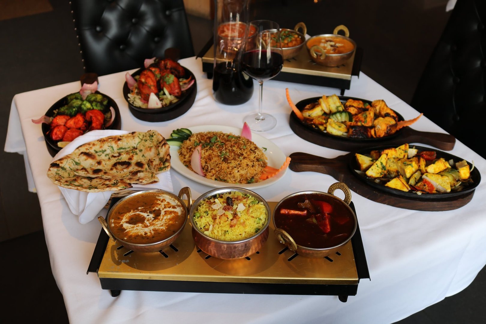 Good for 2 guests. Samosa, pakora, sheesh kabab and chicken tikka and onion bhajee
